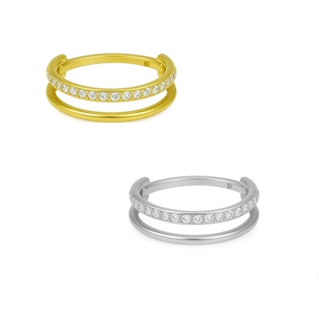 Realce sua ousadia com este elegante piercing de argola em titânio, que combina estilo arrojado e versatilidade. Seu design contemporâneo e sofisticado é perfeito para quem deseja expressar sua personalidade com autenticidade. Use-o sozinho ou em combinações para um visual marcante e cheio de atitude.